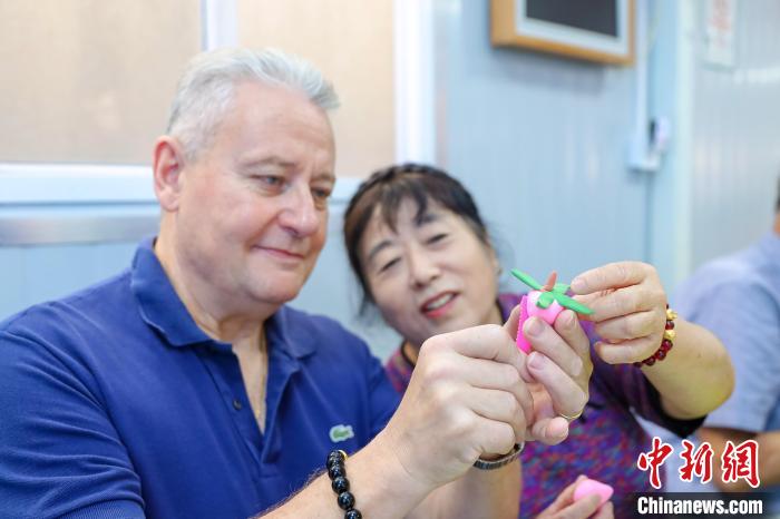 10月20日,“相聚重阳节 体验汉文化”主题活动在山东省青岛市李沧区举行。图为外国友人学习创作泥塑作品。中新网