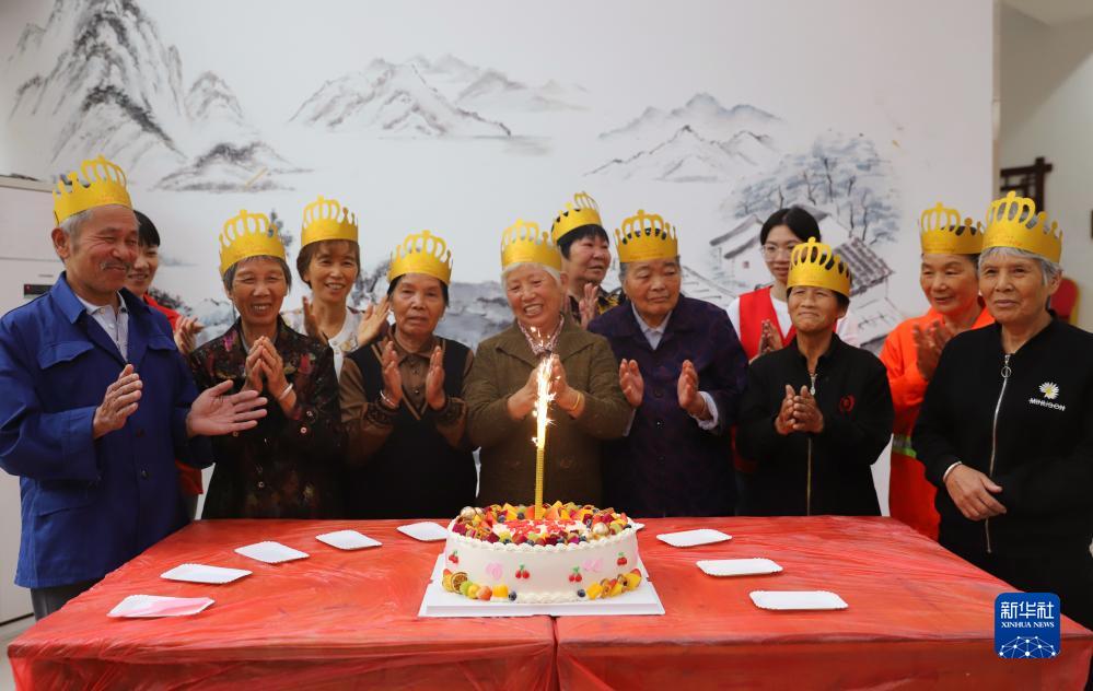 10月22日,浙江省台州市路桥区路北街道的党员志愿者在铭泰社区为老人们过集体生日。新华社