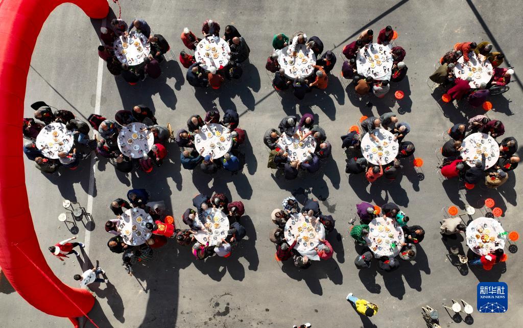 10月22日,河南省济源市轵城镇良安新村的老人在享用“万寿宴”(无人机照片)。新华社