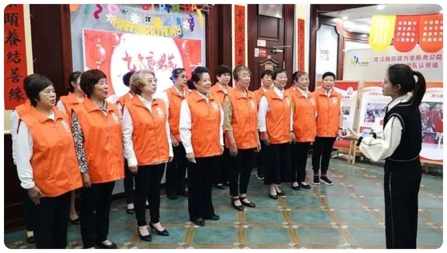 10月20日,为了丰富养老院老人的精神文化生活,欢庆重阳节的到来,上海控江路街道靖宇中路综合为老服务中心快乐靖宇养老院为老年人准备了一场“浓情相聚 情暖金秋”九九重阳敬老文艺汇演活动。图为“高高的青山上,萱草花开放……”走进活动现场,电影《你好,李焕英》的主题曲把温情的氛围瞬间拉满,志愿者们跟着音乐深情歌唱,在座的老人们有的拍手鼓掌,有的沉浸在温柔的歌声里思绪翩翩。《新民晚报》