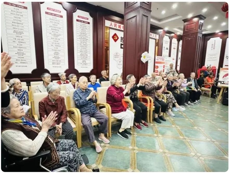 10月20日,为了丰富养老院老人的精神文化生活,欢庆重阳节的到来,上海控江路街道靖宇中路综合为老服务中心快乐靖宇养老院为老年人准备了一场“浓情相聚 情暖金秋”九九重阳敬老文艺汇演活动。图为活动现场。《新民晚报》