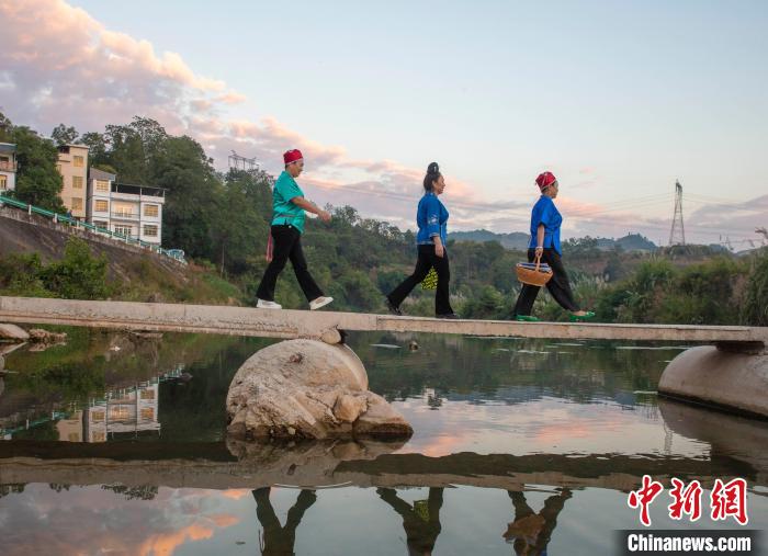 2006年,龙禄颖怀着对家乡的热爱和对苗绣的情怀,带着在外打拼10余年的积蓄返乡创办了贵州省施秉县舞水云台旅游商品开发有限公司。图为龙禄颖(右一)在去施秉县城关镇小河村回收苗绣订单产品途中。中新网