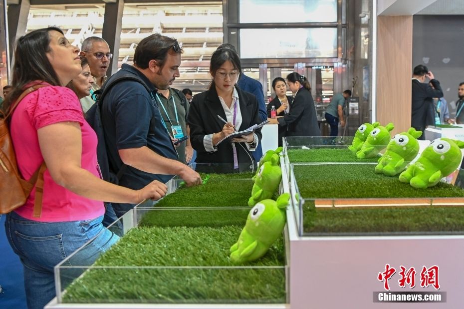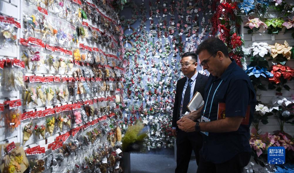 10月23日,采购商在节日用品展区内挑选产品。中新网