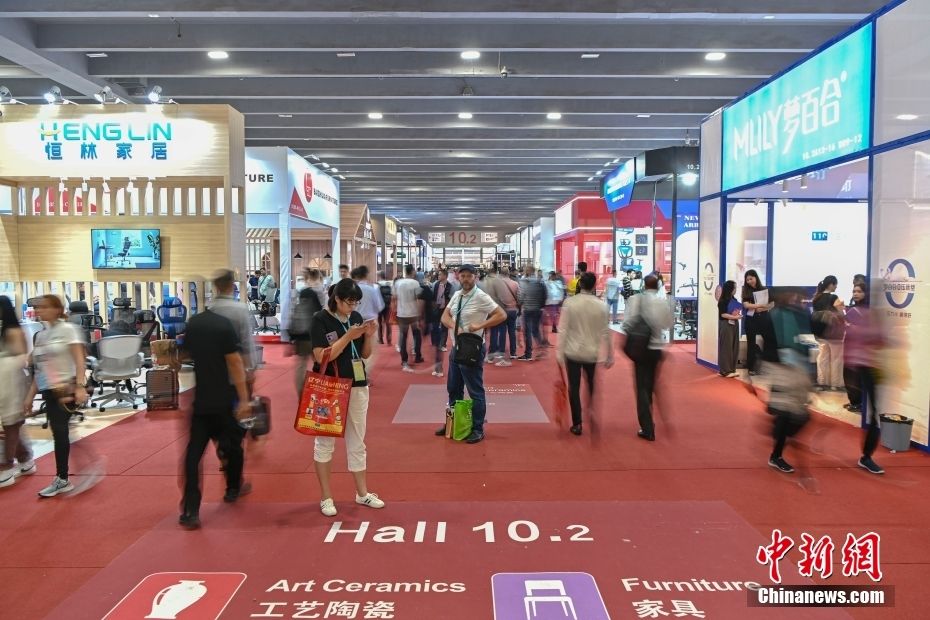 10月23日,为期5天的第134届中国进出口商品交易会(广交会)第二期在广州开展。本期展览总面积51.5万平方米,展位24551个,参展企业9674家。展览以家庭用品、礼品及装饰品、建材及家具等为主。截至23日17时,境外采购商累计到会人数超12.9万人,比上届同期大幅增长,并且纷纷表现出强烈的“扫货”热情。图为10月23日,采购商在家具展区内挑选产品。中新网