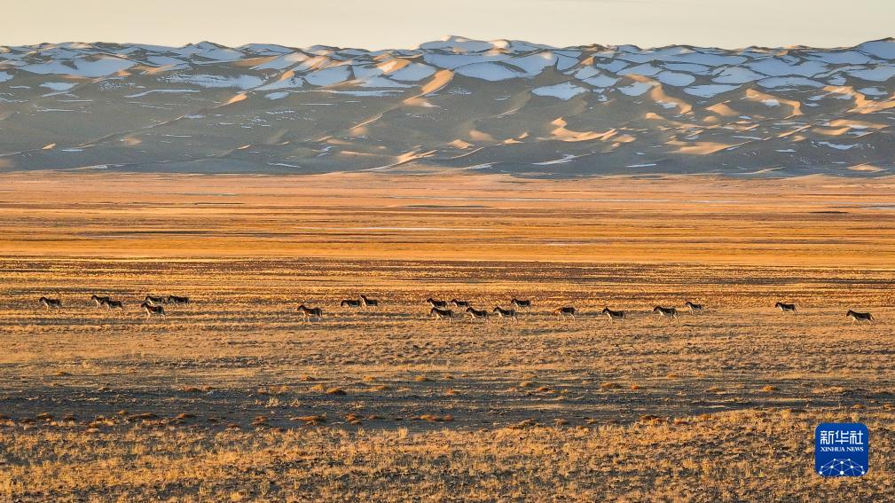 10月18日,在阿尔金山中国国家级自然保护区,藏野驴在洒满阳光的草原上奔驰。该保护区地处新疆巴音郭楞蒙古自治州东南部,属藏北高原昆仑山中部地区,平均海拔4580米,面积约4.5万平方公里,是中国高原荒漠生态系统典型代表。新华社
