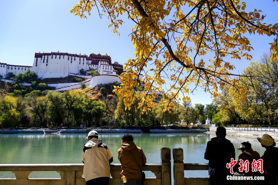 目前,高原古城拉萨由秋转冬,迎来多彩“换装季”。图为10月23日,拉萨市民、游客等在布达拉宫北面宗角禄康公园观赏秋景。中新网