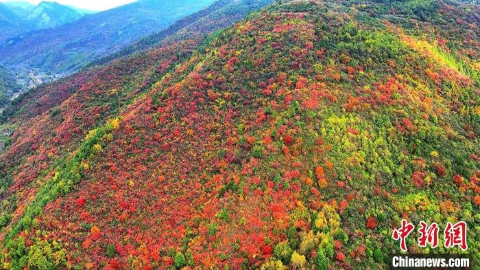 秦岭山上的红叶美景引人醉。中新网/凤县融媒体中心 供图