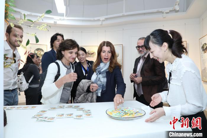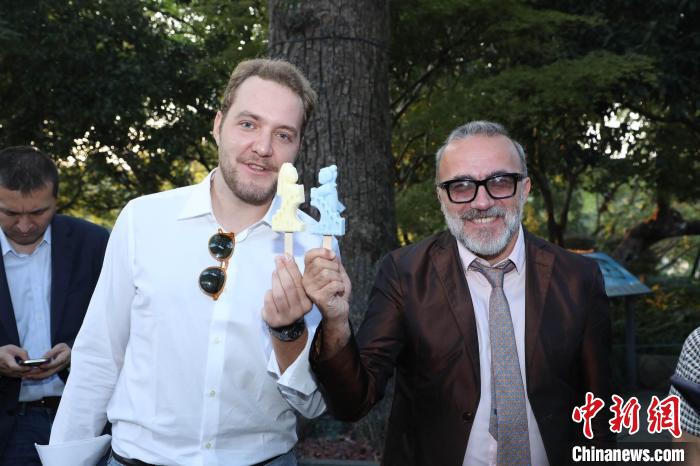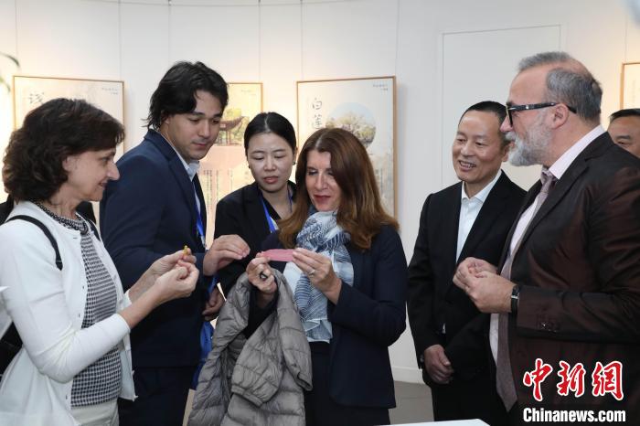 意大利文物部门和专家学者代表被“何处结同心 @西湖”文化展的“爱情抽签”互动吸引并体验。