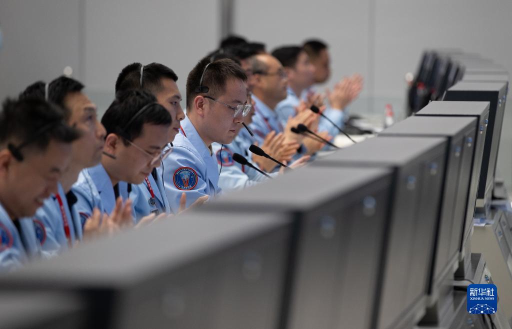 10月26日在北京航天飞行控制中心拍摄的神舟十七号载人飞船和空间站天和核心舱前向端口对接过程的画面。新华社