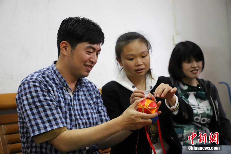 10月28日,“2023年两岸媒体壮美广西行”的媒体记者探访“中国绣球之乡”广西百色靖西市旧州,体验绣球制作技艺,探秘绣球文化。旧州手工绣球起源于宋代,距今已有1000多年的历史。作为广西壮家人的定情信物,绣球如今已经走向海内外,深受民众喜爱。图为两岸媒体记者体验绣球制作。