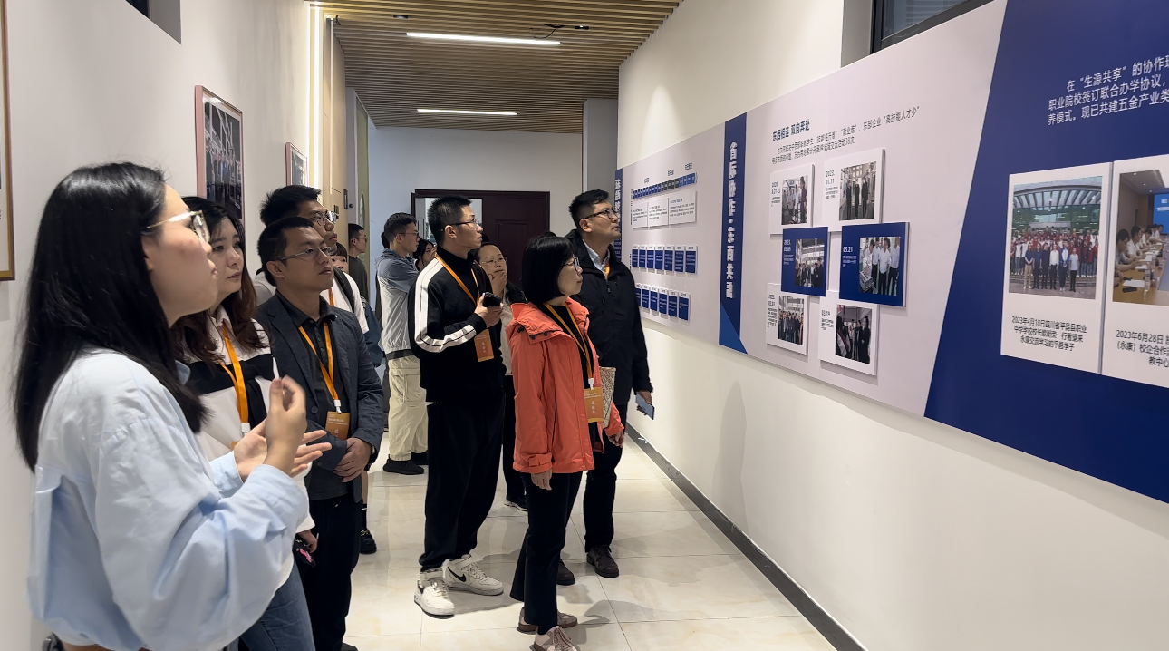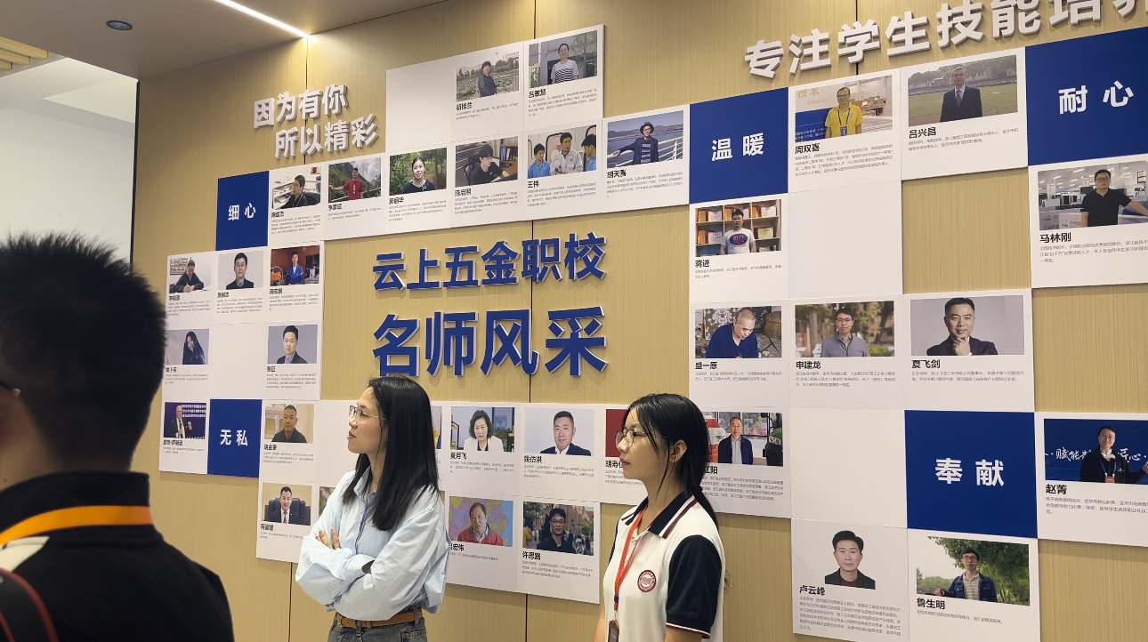 10月27日,在浙江永康出席“2023职业教育与共同富裕高层对话会议”的海外华文媒体代表,走进永康市职业技术学校、飞剑集团、星月集团采风,了解线上线下融合的“东迁西归”技能人才培养新模式,探访“世界五金之都”的5G智能工厂。 2021年以来,为破解东部企业“技工荒”和西部职教学生“就业难”问题,永康创新“东迁西归”东西部协作技能人才培养模式。 图为海外华文媒体参观永康市职业技术学校。(景飞 摄)