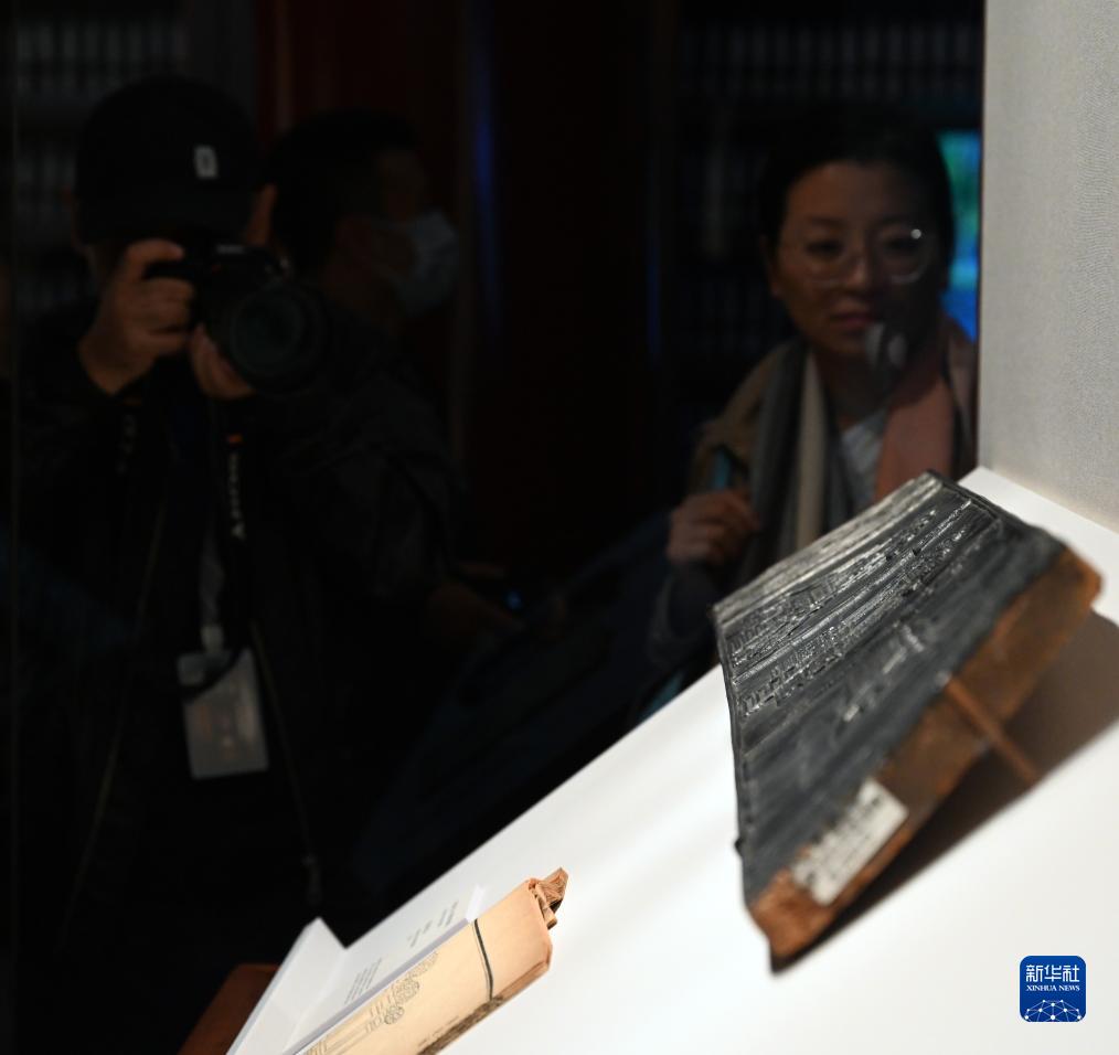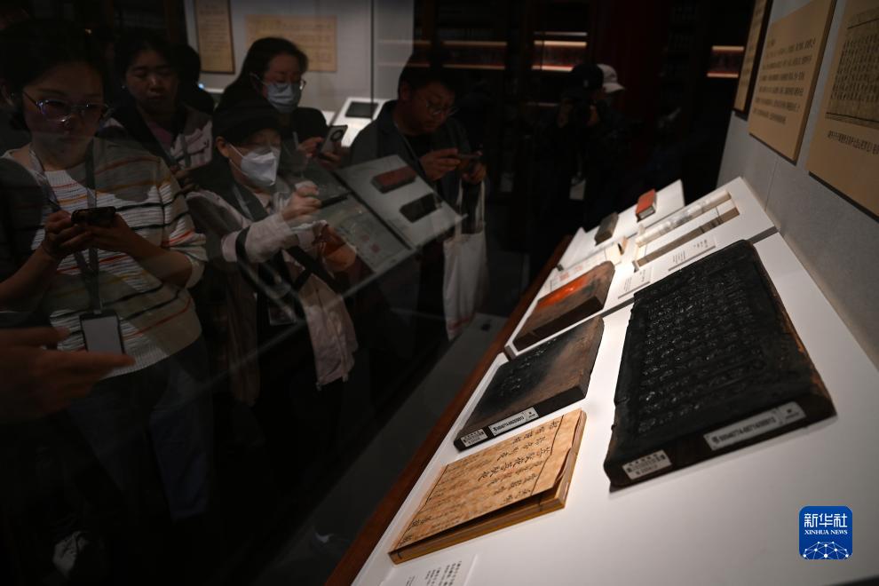 “雕版馆”内文物吸引参观者拍照。新华社