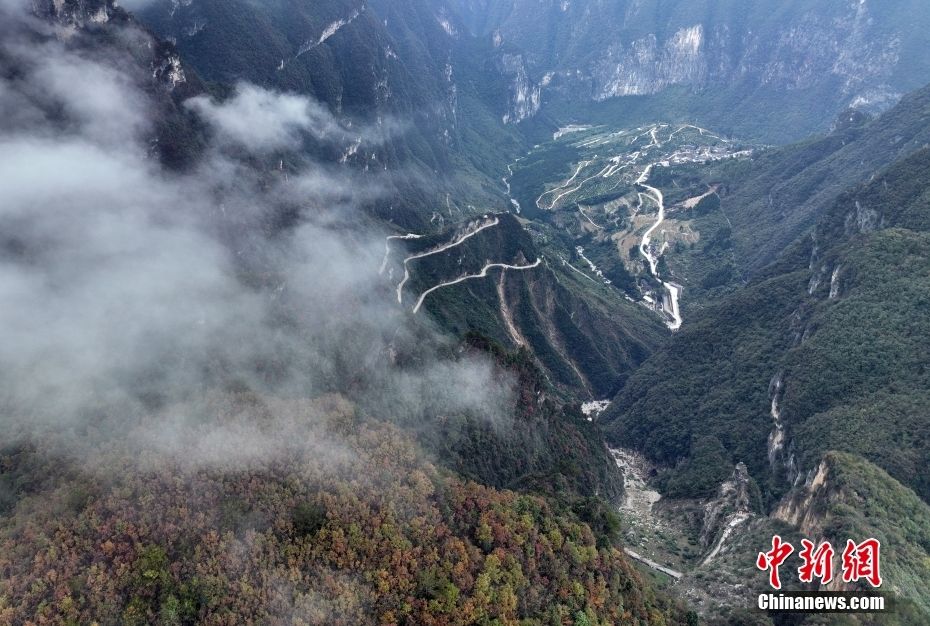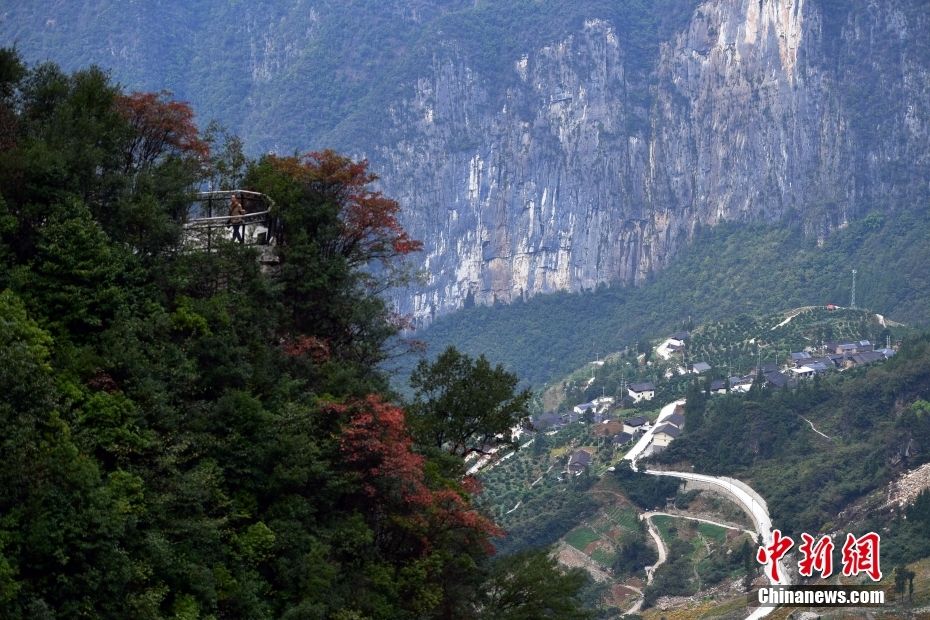 1997年,重庆市巫山县下庄村村委会主任毛相林带领全体村民以最原始的方式在绝壁上开山凿路,历时7年,建造了一条长达8公里的“天路”,改变了该村没有出山公路的历史。如今,这条路也为乡亲们带来幸福生活。图为10月28日,游客参观“天路”。