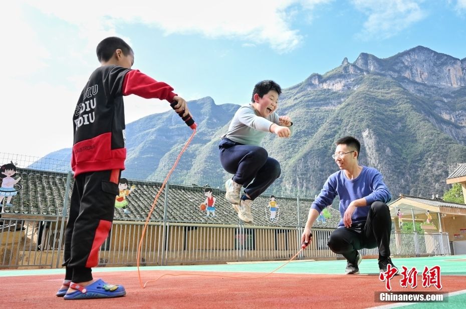 10月28日,竹贤八一爱民小学下庄教学点内,老师和小学生们玩起了跳绳游戏。学生们表示,他们希望以后能走出大山考上外面的大学。