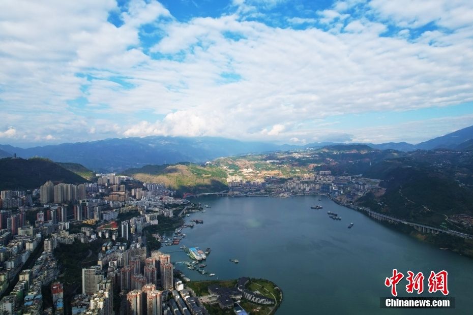 10月28日,航拍重庆市巫山县城区。