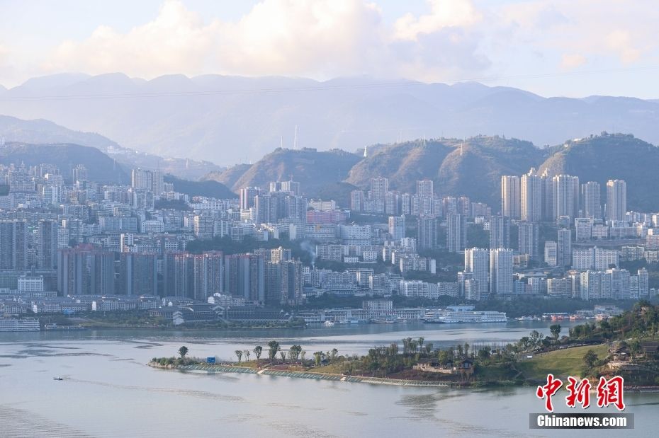 10月28日,从长江巫峡口俯瞰巫山县主城区秋日江景美如画。