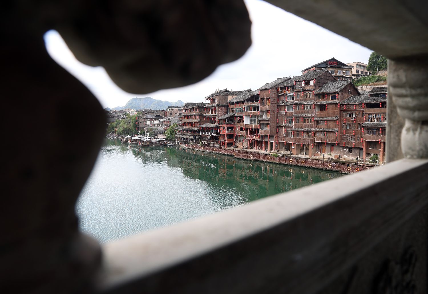 10月28日,游客们在下司古镇合影。 李久骏摄