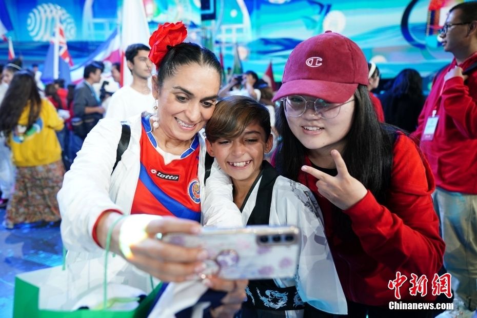 参赛选手与家人和一路陪伴的工作人员拍照留念。中新网