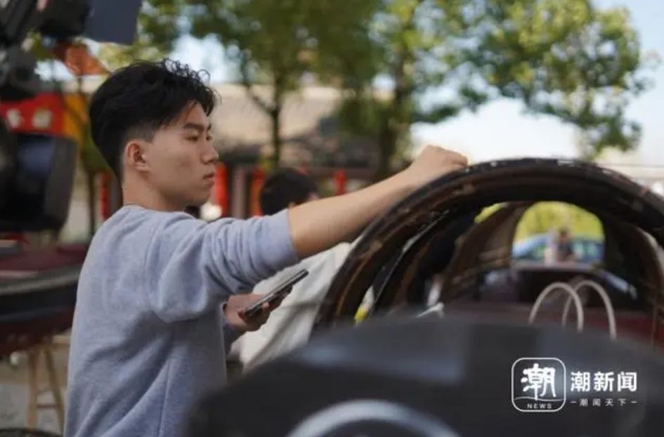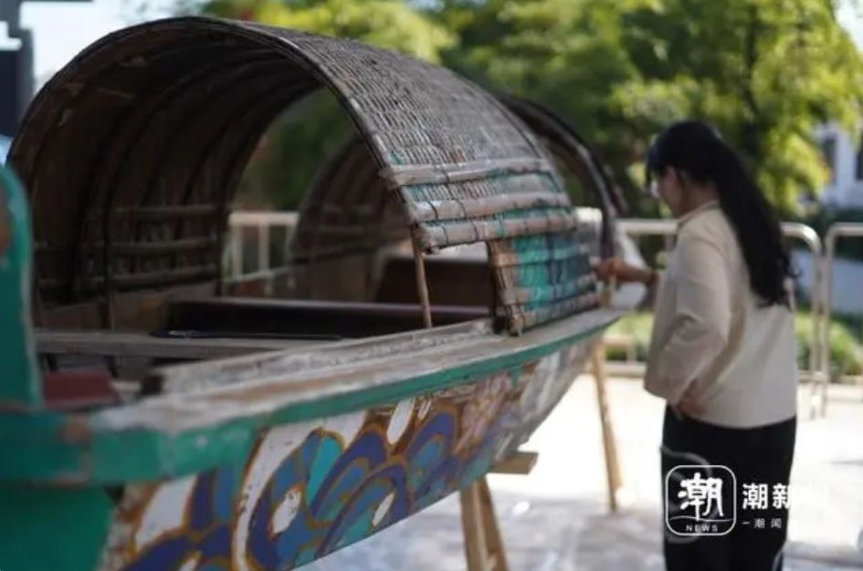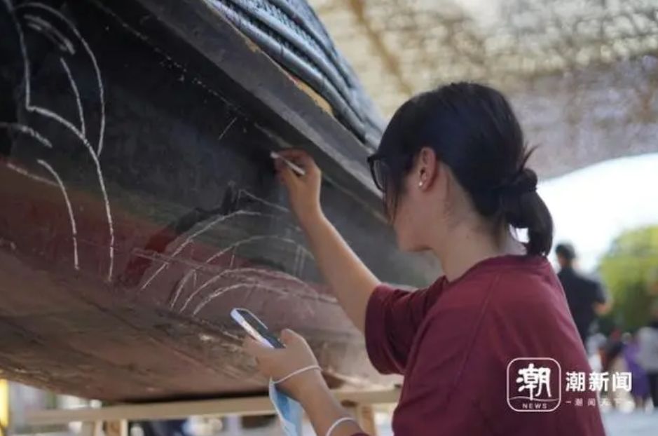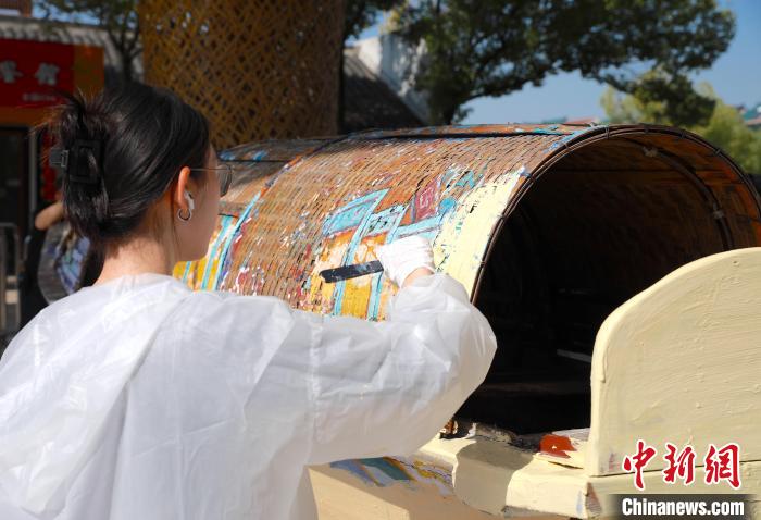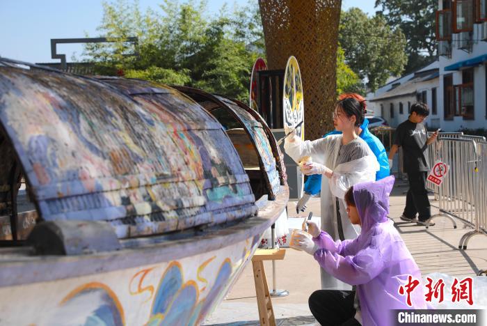 小桥流水人家、鲁迅人像……依托青年学子丰富的想象力,一艘艘乌篷船逐渐五彩斑斓,显得更加年轻、时尚、有活力,焕发出时代新生机。图为青年学子为乌篷船添图案。中新网