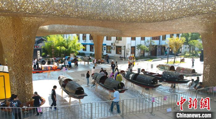 据了解,此次活动突出水乡风情,真实立体地展现了鲁迅故乡的民俗特色和时代风貌。接下来,当地还将推出社戏节目展演、乌篷船巡游等活动,让中华优秀传统文化润泽乡村振兴,“圈粉”更多年轻人。图为含有鲜艳图案的乌篷船亮相。中新网