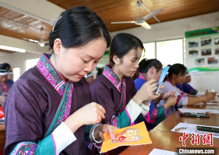近年来,三江县以“公司+合作社+绣娘+培训+订单”模式,大力开展民族刺绣培训进村屯、进社区活动,引导绣娘在传统侗族刺绣产品中融入现代设计元素,让绣娘学成后居家承接刺绣订单,实现非遗传承、就业增收“两不误”,推动“指尖技艺”变成“指尖经济”。图为学员正在进行实践创作。中新网