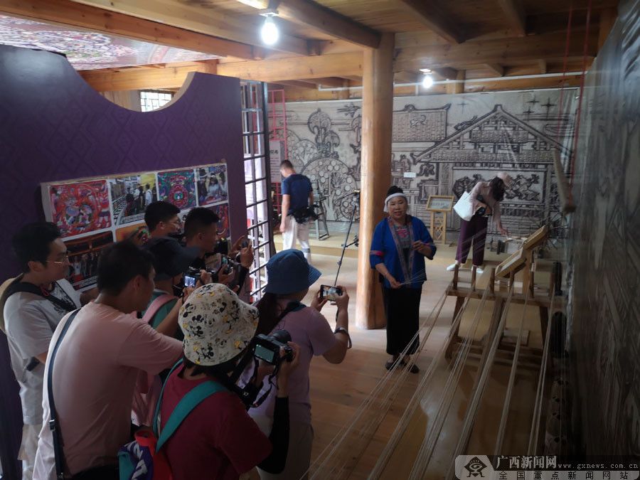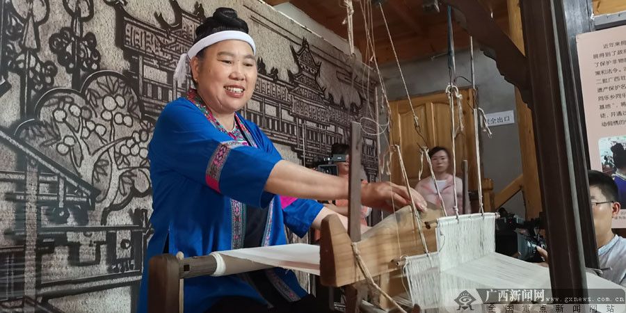 杨甜在侗绣博物馆给记者展示侗族的手工织布。广西新闻网