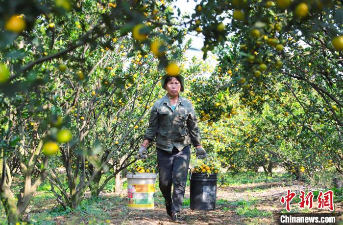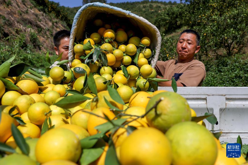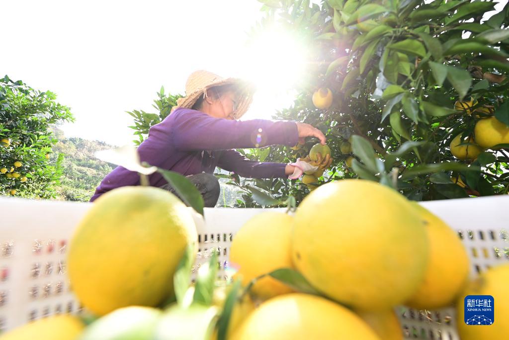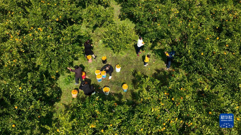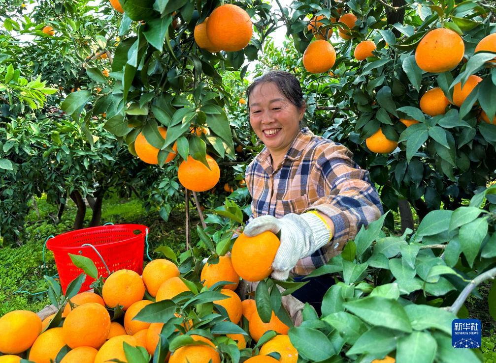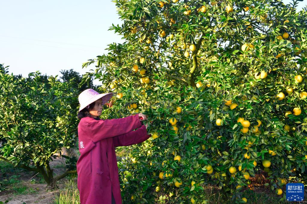 11月1日,四川省眉山市仁寿县富加镇大山村村民在采摘柑橘。新华社