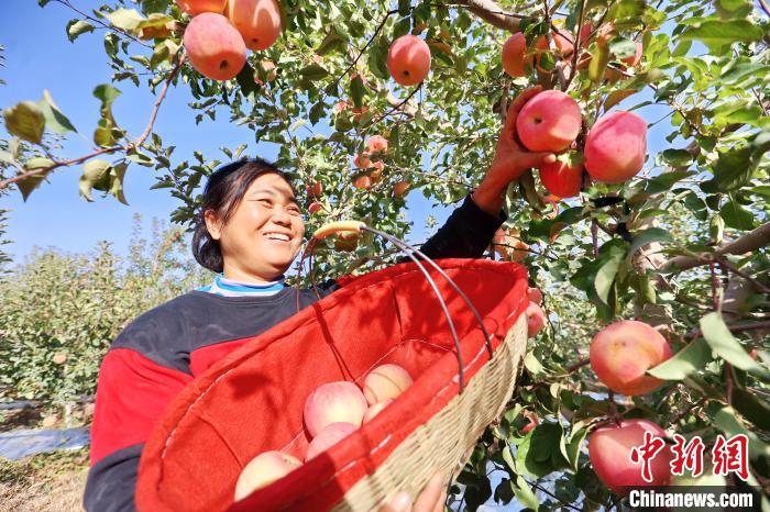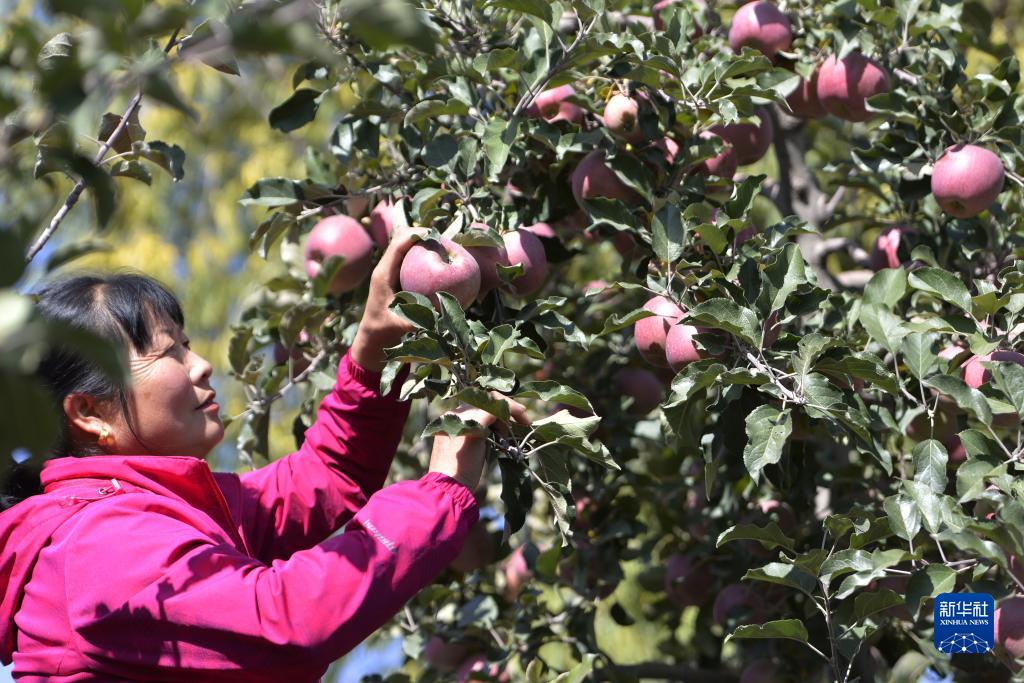 10月31日,果农在甘肃省永靖县岘塬镇刘家村果园里采摘苹果。新华社