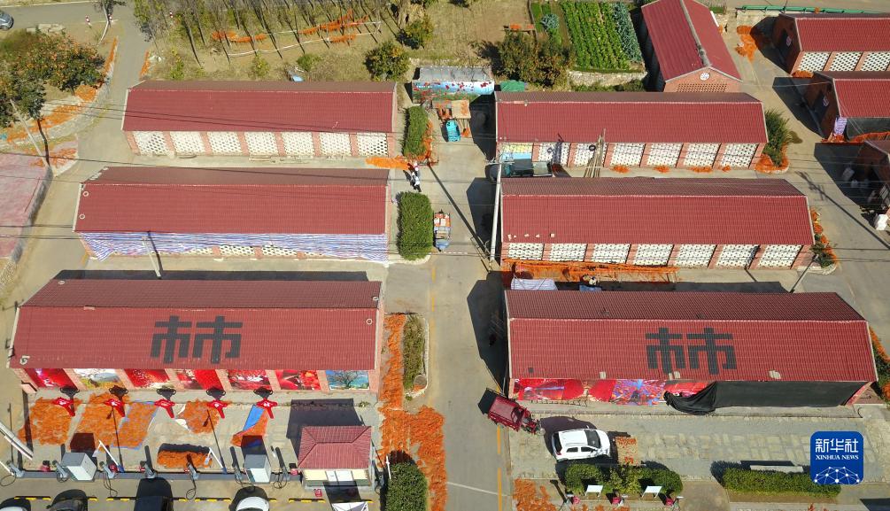 11月1日,在山东省潍坊市临朐县五井镇,村民在晾晒柿子(无人机照片)。新华社