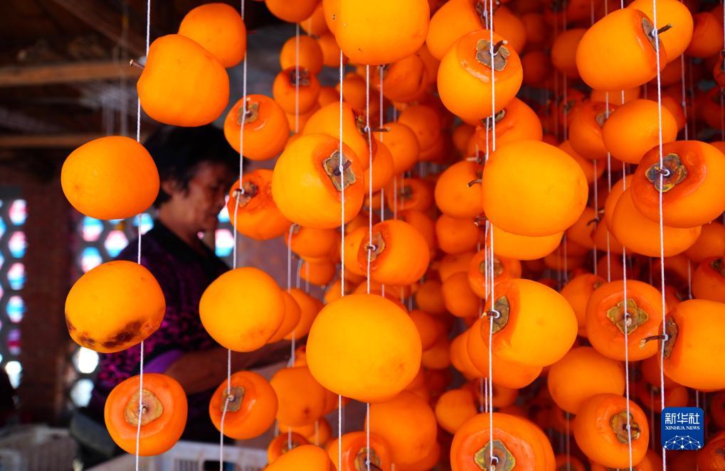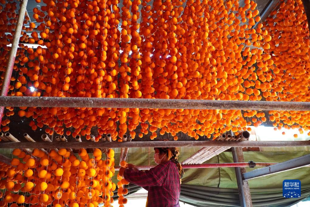 11月1日,在山东省潍坊市临朐县五井镇,村民在制作柿饼。新华社