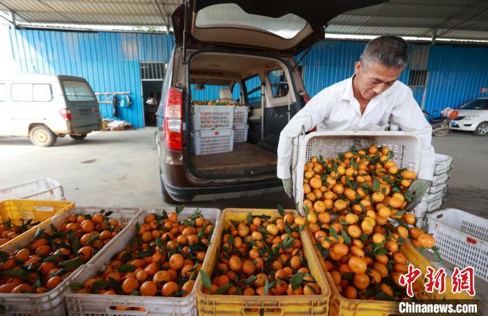 广西省柳城华侨农场自1979年开始种植蜜桔,经过多次品种升级,蜜桔产业已经成为当地侨胞增收致富主要产业之一。图为大量优质蜜桔销往俄罗斯、马来西亚、哈萨克斯坦等国家。中新网