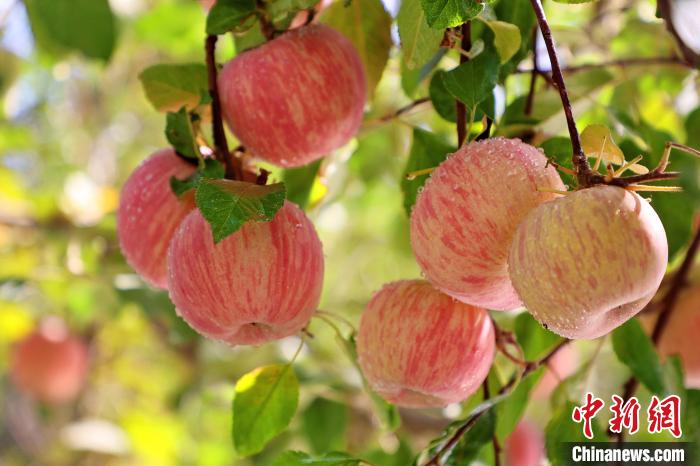 近日,走进新疆维吾尔自治区阿克苏地区库车市比西巴格乡的果园里,苹果树郁郁葱葱、红果满枝,树上色泽诱人的苹果压弯了枝头,引人垂涎,果农们忙着采摘、挑选、搬运,到处是一派忙碌喜悦的景象。中新网
