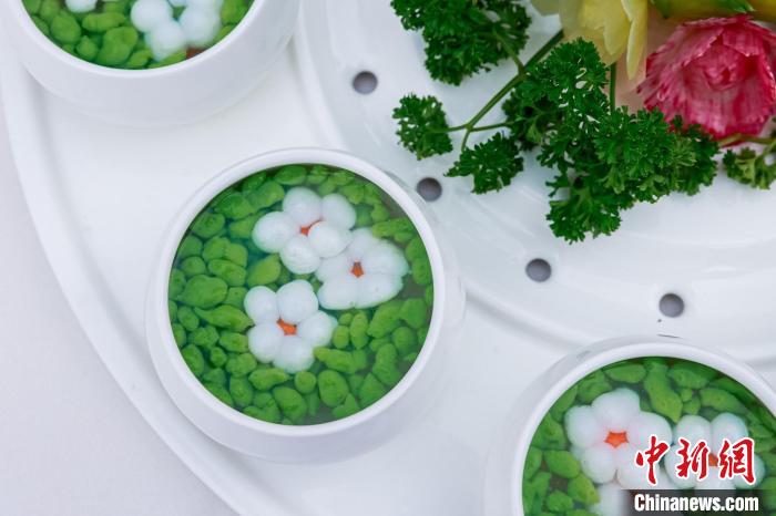 第九届中华茶奥会全国名茶点大赛吸引了各地名点师参赛,现场不仅有中华传统茶点、茶肴,也有在传统之上再创新的特色茶点。图为参赛茶点展出。中新网/主办方供图