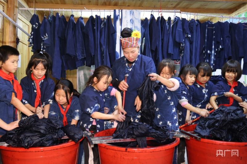 学生们学习蓝靛染。央广网/施秉县融媒体中心供图