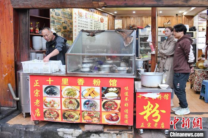 廖文辉与塔季娅娜来到凤凰古城的一家米粉店购买米粉。