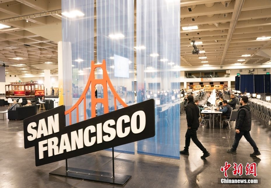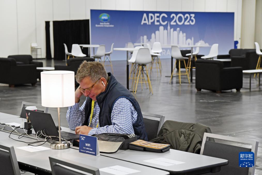11月12日,各国记者在美国加州旧金山2023APEC会议国际媒体中心工作。中新网