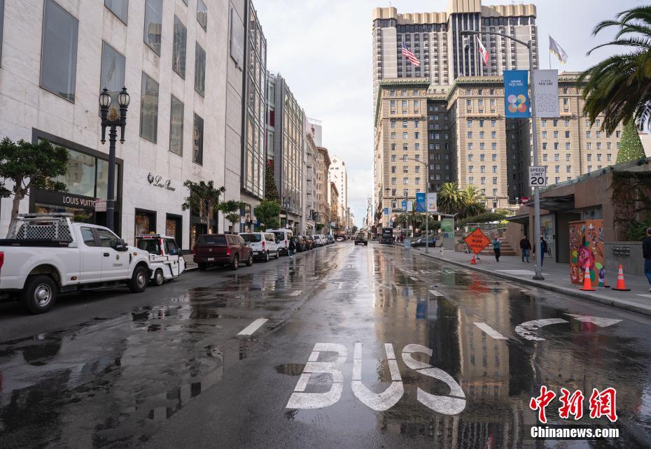 旧金山联合广场周边刚刚被冲洗过的街道较往常更为整洁。中新网