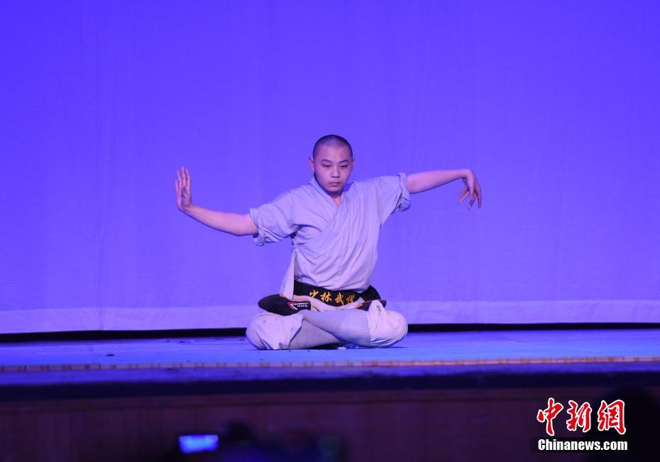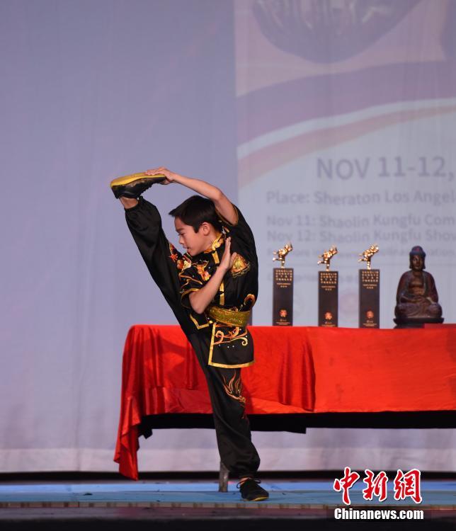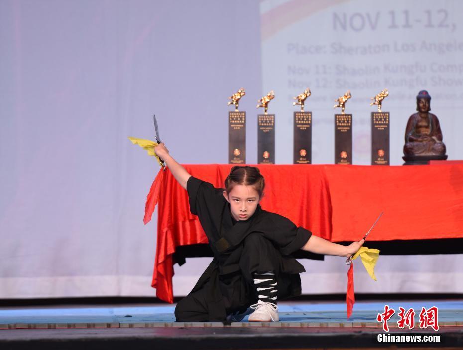 “北美洲少林考功大赛”获奖者展示少林功夫。