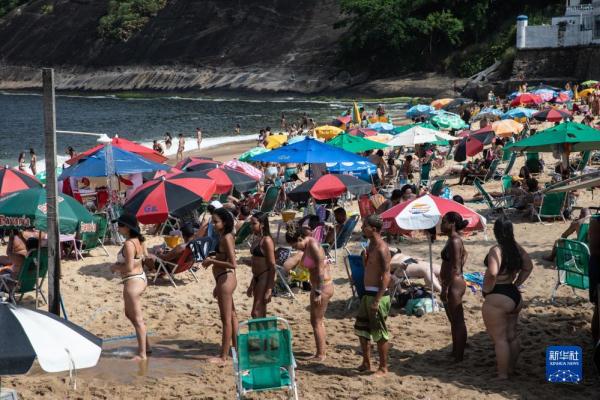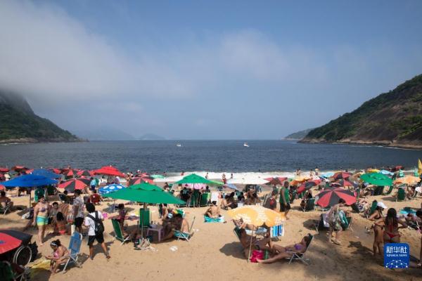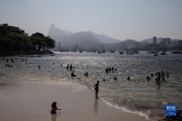 11月14日,人们在巴西里约热内卢乌尔卡海滩上纳凉。
