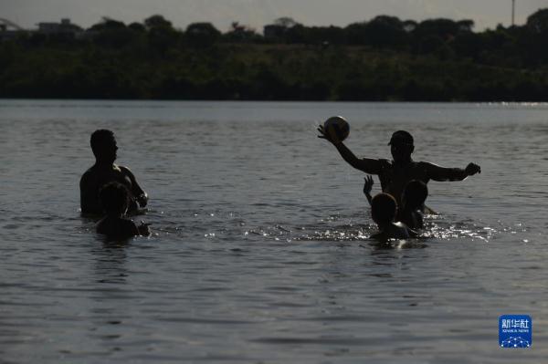11月14日,人们在巴西首都巴西利亚帕拉诺阿湖中消暑。
