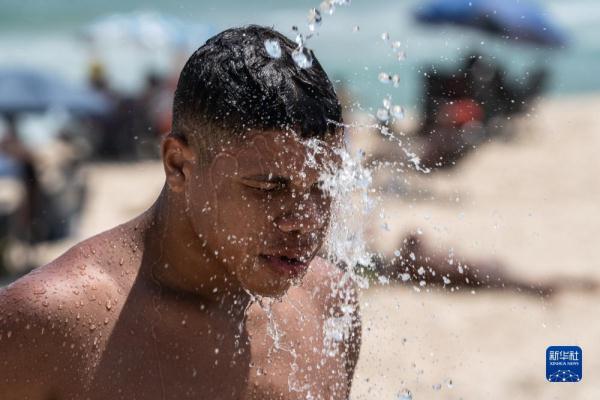 近日,巴西多地经历热浪袭击。巴西国家气象研究所已将15个州和联邦区列入气温高于平均水平的“危险”警报中。根据预测,接下来的几天,部分地区气温将超过40℃。图为11月14日,人们在巴西里约热内卢红海滩上等待冲凉。