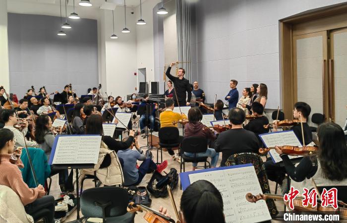 11月8日下午,费城交响乐团指挥特里斯坦·瑞斯·舍曼正在中国交响乐团排练厅指挥排练。中新网
