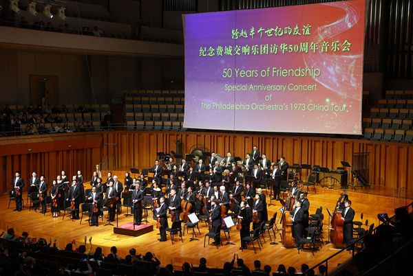 “跨越半个世纪的友谊”——纪念费城交响乐团访华50周年音乐会由费城交响乐团、中国交响乐团、美国亚裔表演艺术中心联袂呈现。上半场由美国指挥家特里斯坦·瑞思·舍曼指挥。开场前两首曲目为《坎迪德》序曲和改编管弦乐作品《二泉映月》。随后,来自美国、英国、墨西哥、尼加拉瓜4国的7位青年歌唱家用中文演唱了交响乐谱曲的《登鹳雀楼》《枫桥夜泊》《咏鹅》《将进酒》4首唐诗名篇。下半场由中国交响乐团首席指挥李心草指挥,演奏了贝多芬第五交响曲。在热烈掌声中,交响乐团返场加演了美国作曲家安德森的《乡村提琴手》和改编自刘天华作品的《良宵》2个经典曲目。中国文化和旅游部政府门户网站