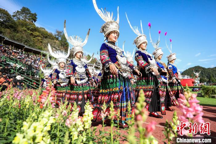 苗族民众穿着的节日盛装。中新网