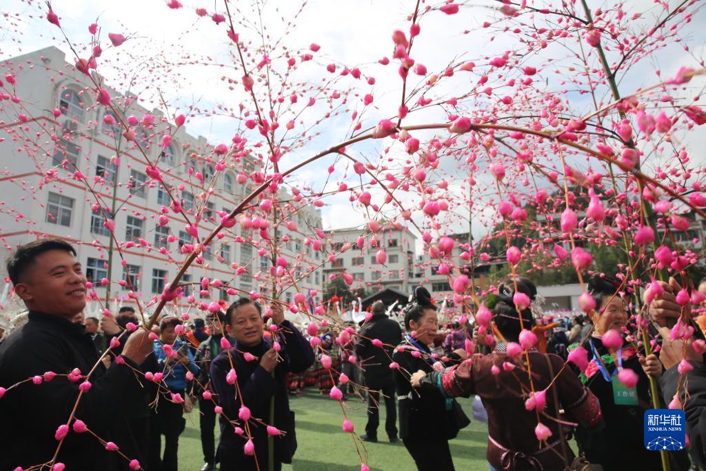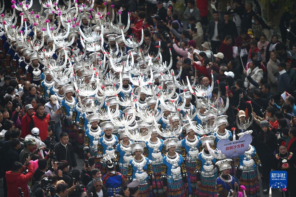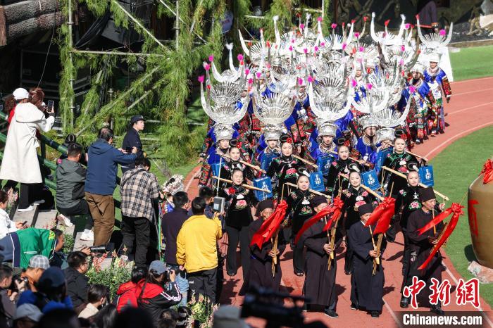 11月16日,在雷山县县城,苗族民众参加苗年和鼓藏节欢庆活动。新华社