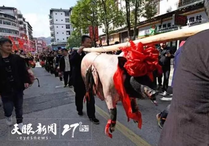 苗族民众挑着节日的礼物参加非遗大巡游。《贵州日报》