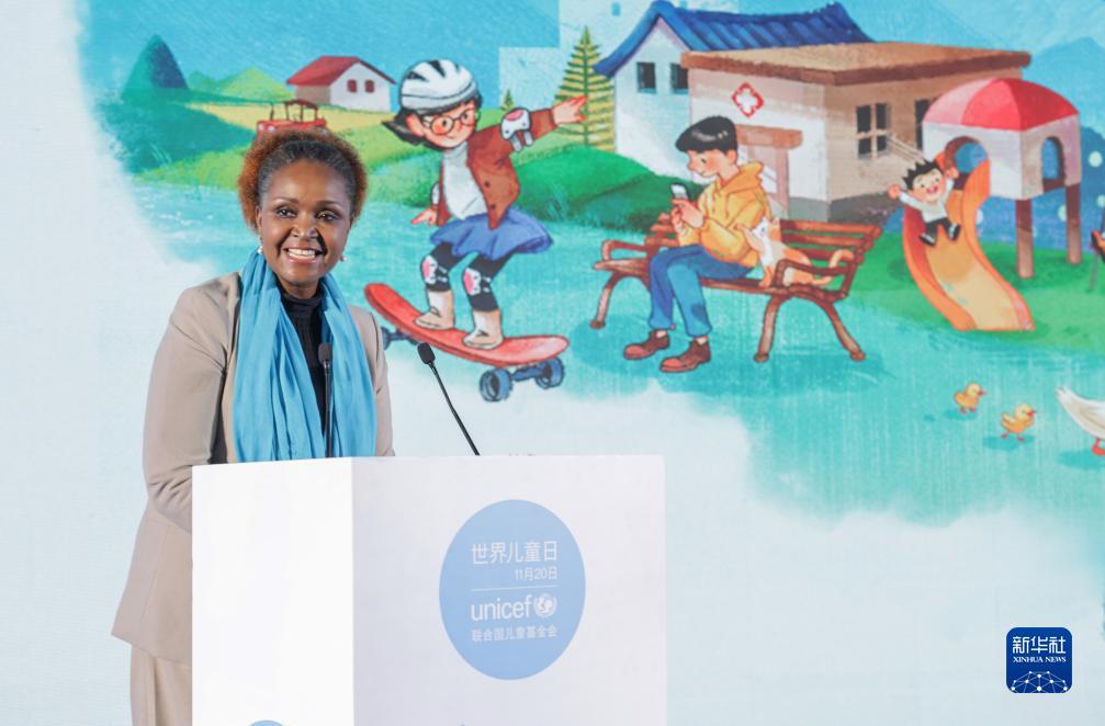 11月20日,联合国儿童基金会驻华代表桑爱玲在活动上致辞。新华社