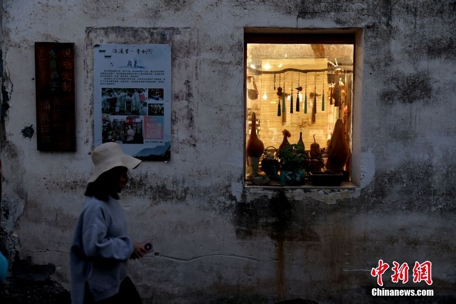 位于富春江南岸的浙江省杭州市桐庐县深澳村,始建于南宋,如今不少青年创客在此开设了制香店、葫芦烙画、绣房等体验馆,为古韵老街增添新活力。图为11月22日,深澳古村内的葫芦烙画店。中新网