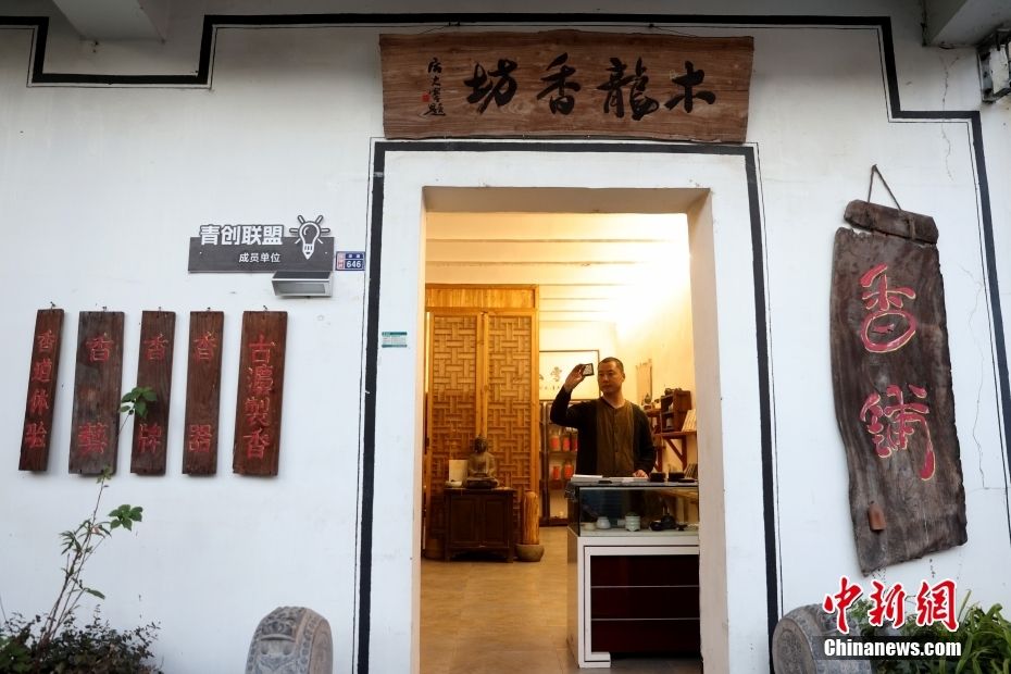 11月22日,深澳古村内木龙香坊主理人涑南在店内忙碌。中新网