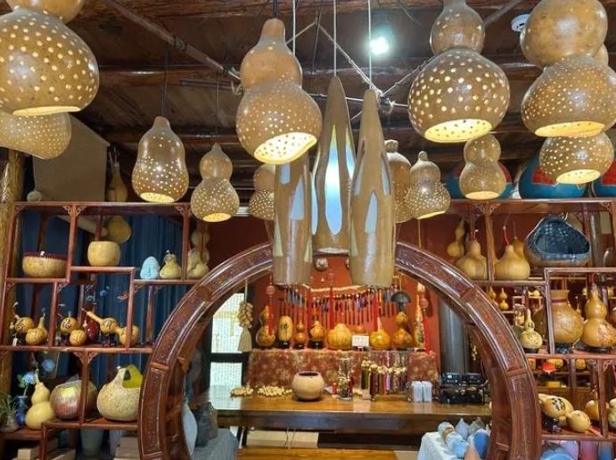 “90后”匠人吴芸婷与丈夫卢俊辗转了多个地方,最终将文创工作室落到了深澳。“喜欢这里的宁静,可以寻找创作灵感。”卢俊说,希望在这里做出更多好作品的同时,用传统手艺温暖乡村。他的身后,满眼是大小不一、形态各异的葫芦,上面画有山水、花鸟等中国传统元素,也有小黄人、麦兜等受欢迎的卡通人物。图为匠人吴芸婷与丈夫卢俊开的工作室。潮新闻客户端
